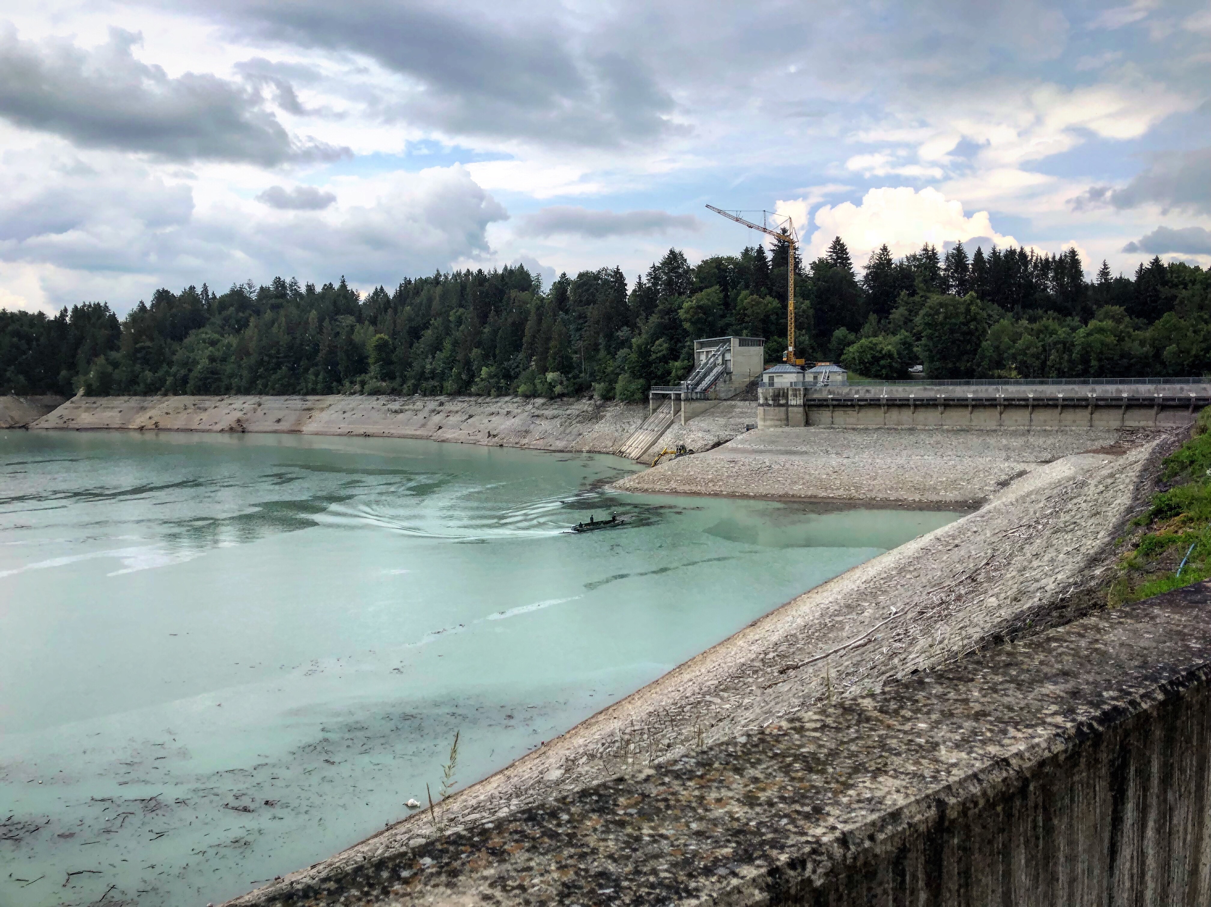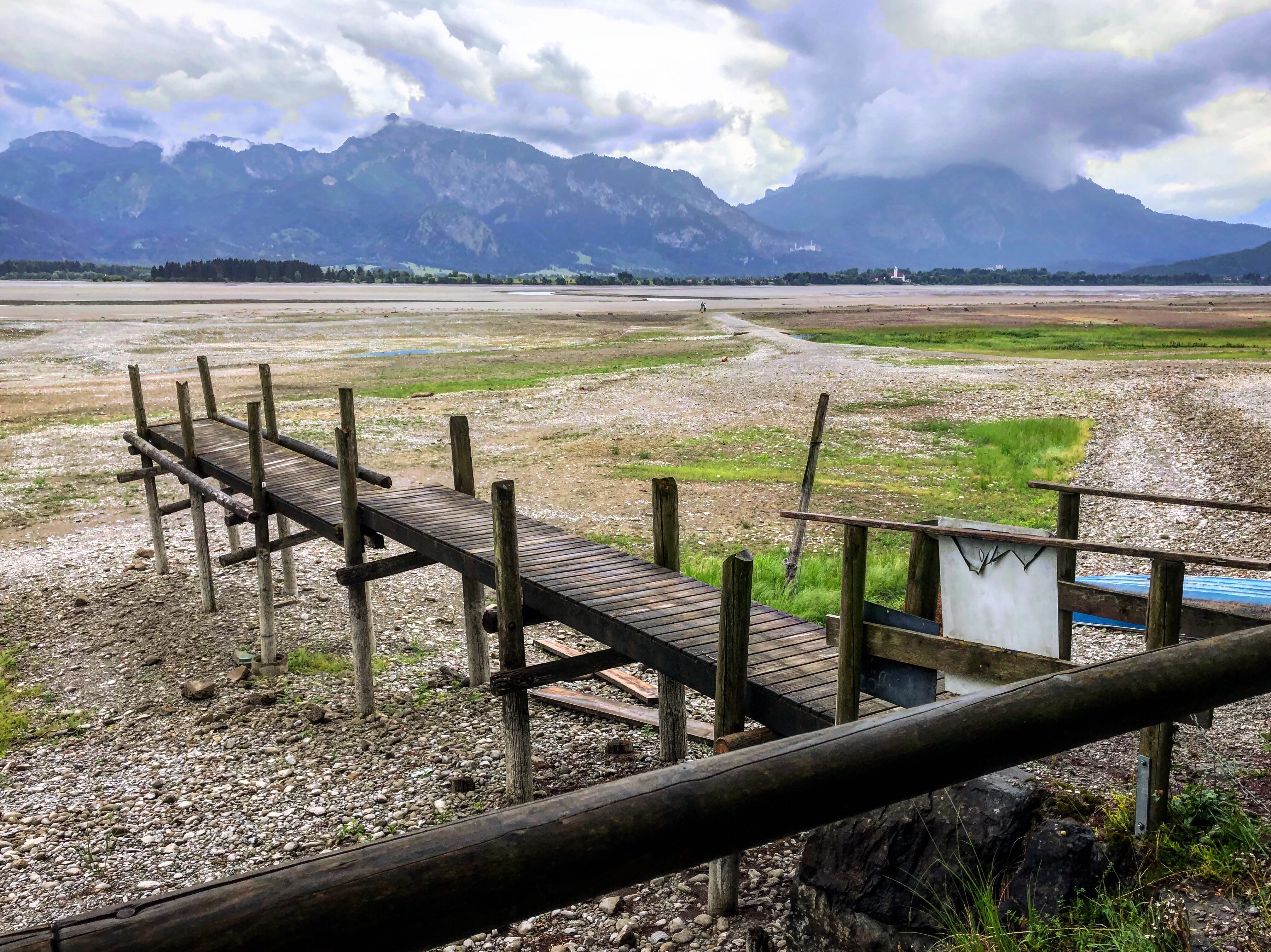 Das Allgäu, in unserem Fall das Ostallgäu, ist eine zauberhafte Gegend: Grüne Weiden, romantisches Kuhglockengeläut, zahlreiche ruhig gelegene Seen – oder wie in unserem Fall: Trockengelegte Seen. In diesem Jahr führt einer der großen Schauplätze der Region, der Forggensee, nämlich kein Wasser. Deutschlands größter Stausee liegt diesen Sommer zum ersten Mal seit 64 Jahren brach aufgrund von Sanierungsarbeiten. Das tut der Schönheit der Landschaft und der Vielzahl an Ausflugsmöglichkeiten allerdings keinen Abbruch.